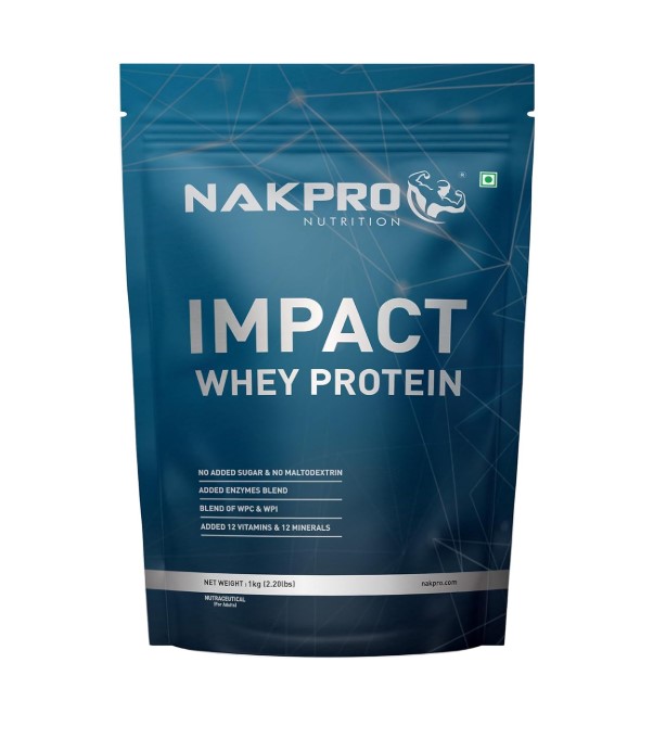 Nakpro Impact Whey Protein is a blend of whey protein concentrate and isolate. It typically offers around 24g of protein per scoop, along with naturally occurring BCAAs and essential amino acids that support muscle recovery and growth. It comes in multiple flavors like chocolate, vanilla, and cookies & cream.